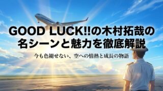 不器用な青年の成長に胸が熱くなるGOOD LUCK!!の木村拓哉の名シーンを徹底解説。香田機長との激しい対立や、歩実との最終回の結末など、今も色褪せないGOOD LUCK!!の木村拓哉の名シーンの奥深さと魅力を紐解きます。あの感動のフライトをもう一度追体験しませんか?