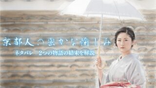 京都人の密かな愉しみ 「京都人の密かな愉しみ」ネタバレ|2つの物語の結末を解説 「京都人の密かな愉しみ ネタバレ」を徹底解説。三八子と駿の恋の結末、そしてBlue修行中の若者5人の門出まで、2つの物語の最終回を詳しく紹介します。この記事を読めば、あなたが知りたかった「京都人の密かな愉しみ ネタバレ」に関する全ての疑問が解決し、感動のラストを深く理解できます。 2025.10.23 ドラマ作品京都人の密かな愉しみ作品考察