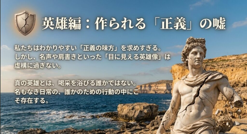 英雄編における正義と英雄の嘘