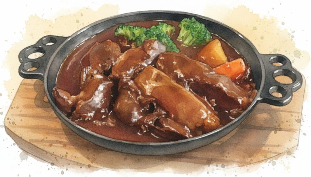 ドラマに出てくるような濃厚なビーフシチューは、実は意外とシンプルに作れます。ここでは、作中の雰囲気に近い、牛すじ肉を使った基本のレシピをご紹介しますね。時間をかけてコトコト煮込む過程も楽しんでみてください。