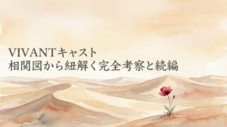VIVANT VIVANT キャスト 相関図から紐解く完全考察と続編 複雑に絡み合うVIVANTのキャストと相関図を分かりやすく整理し解説しました。別班、テント、公安の真の目的や潜伏していた裏切り者の正体とは?本記事を読めば、VIVANTのキャストと相関図だけでなく、未回収の伏線や2026年続編の最新情報まで、抱えていた物語の謎が全て解決します。 2026.04.11 VIVANT